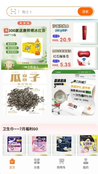 界面设计清晰简洁,具备商品搜索、分类查找等实用功能,可帮助用户快速定位所需商品,购物流程简便高效。