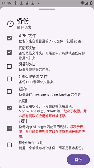 App Manager具备备份应用APK以及用户数据(像.adbk文件这类)的功能,导出之后把它们传输到新设备上,在新设备里能够直接恢复应用和对应的数据,不需要重新安装应用或者登录相关账号。