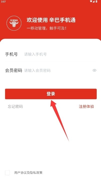 回到登录页面,填写已完成注册的手机号码和密码,勾选同意相关协议后点击登录按钮进入系统。