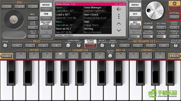 在本站完成安装并进入首页后,用户会发现ORG 24电子琴的界面仍为全英文状态,此时只需点击界面上的设置选项即可。