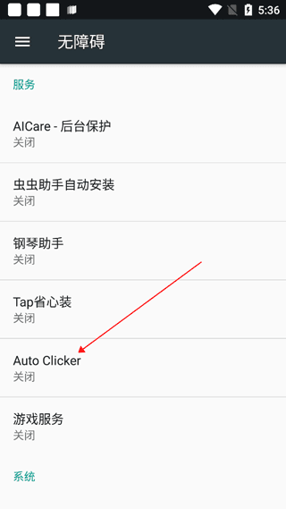 2、进入无障碍界面,我们选择【Auto Clicker】开启,