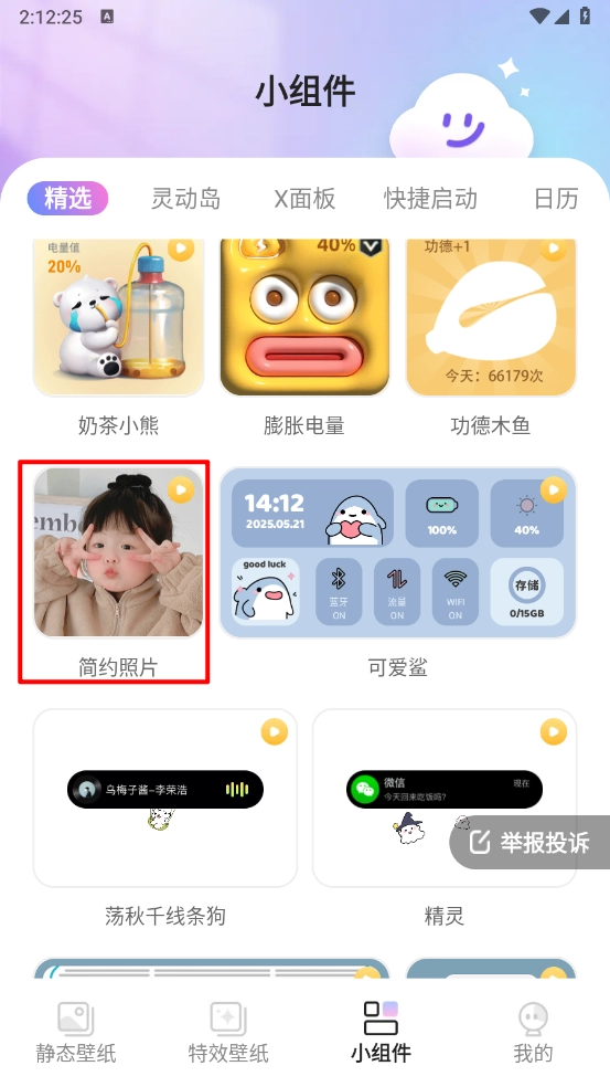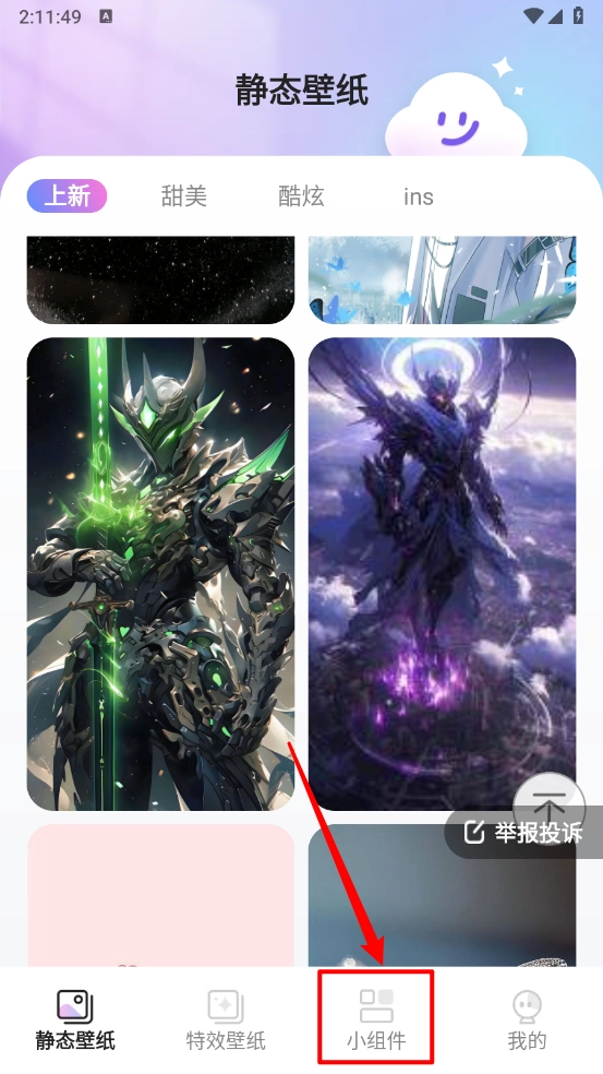 打开甜梦壁纸,在主页点击"小组件"进入。
