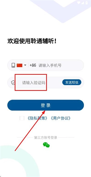 在验证码输入框中填入收到的验证码,然后点击登录按钮,即可完成账号登录流程。