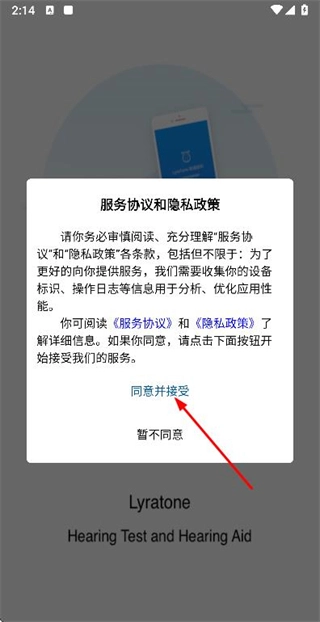在使用协议与隐私政策弹窗里点击“同意并接受”按钮,即可进入登录页面。