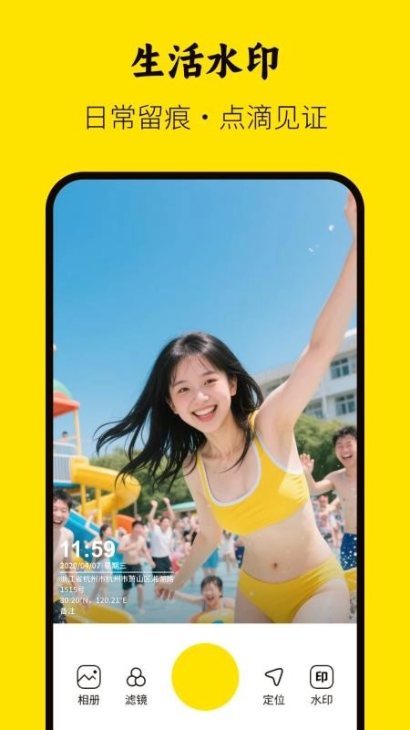 打开应用后,就能随时用自带的水印相机拍照打卡,轻松记录每一个瞬间。