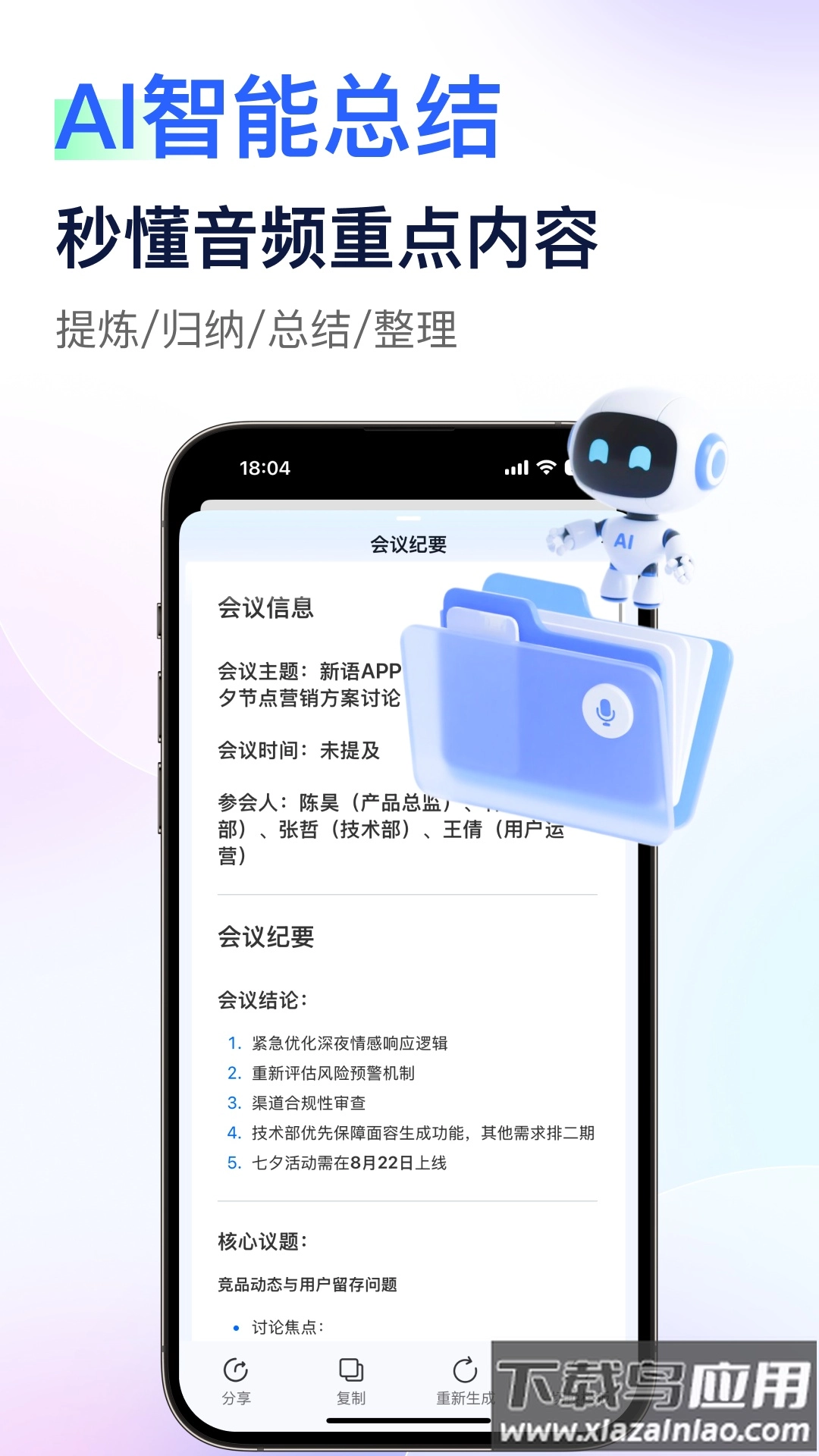 AI可以迅速把握音频的核心要点,对内容进行提炼、归纳以及总结梳理。