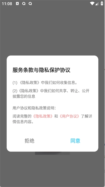 启动Audio音频提取器应用,仔细阅读隐私政策与用户协议的内容,并点击同意相关条款。