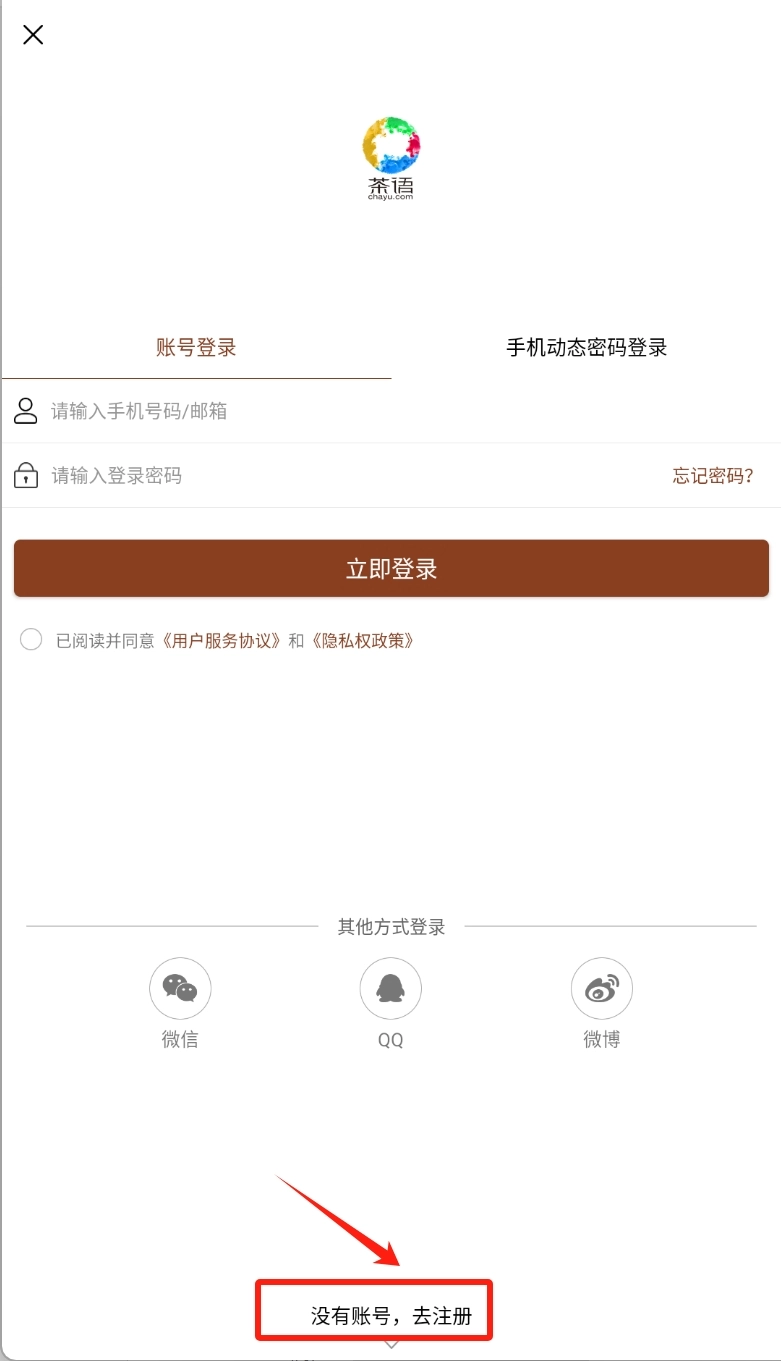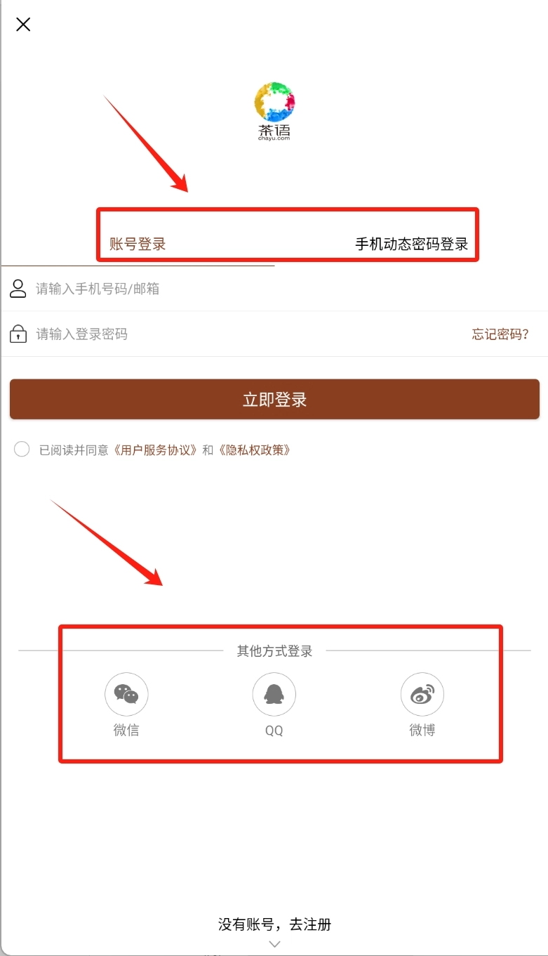 打开茶语首页,有多渠道可以登录。