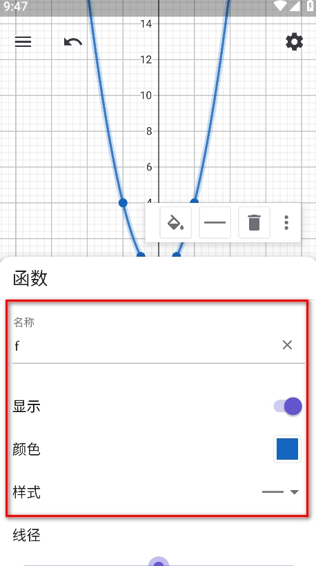 在弹出的选项里,能够对函数名称、颜色、样式等进行修改。