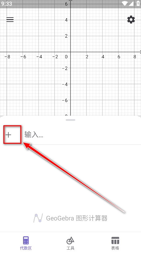 然后直接在加号图标的右边输入内容,这里我们输入函数f(x)=x²,输入完成后就能看到图里出现了对应的图像。