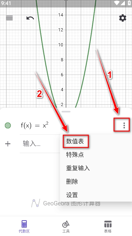 表格功能支持用户直接为函数生成数值表,能为绘图操作提供便利。