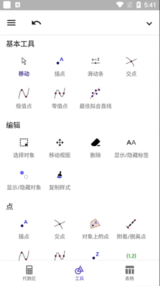 图形计算器是一款面向数学与科学学习场景打造的智能辅助工具,集函数绘图、代数运算、几何构图与数据分析等核心功能于一体。它借助直观的可视化交互方式,把抽象的数学概念转化为动态可视的图像,助力学生、教师和科研人员更高效地处理复杂计算任务,从而深化对知识的理解并提升学习与研究效率。在绘图功能上,它支持直角坐标、极坐标、参数方程等多种形式的二维函数图像绘制,还能实现球面、平面等三维对象的建模,可满足从基础函数学习到高级几何研究的全场景需求。用户在操作过程中,能通过拖动关键点、调整参数数值或滑动控制条,实时查看图形的动态变化——比如修改三角函数的频率参数时,对应的函数图像会同步更新,让用户直观理解函数特性的改变。在几何构图方面,用户可自由创建三角形、圆形等基本几何图形,系统会自动维持图形间的几何约束关系,拖动顶点即可观察图形在约束条件下的形态变化。此外,它还支持将计算结果、生成的图像或动态演示过程,导出为Excel表格、图片文件或交互式网页等格式,方便用户在课堂上展示分享或用于作业提交。