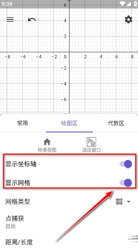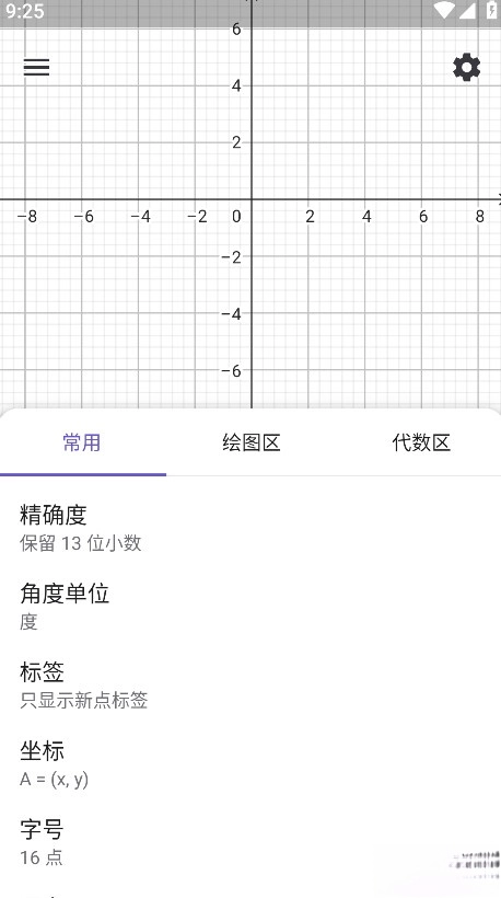 要是绘图区域里没呈现出网格和坐标轴,你可以点击右上角的设置选项。
