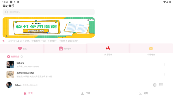 元力音乐借助独特的推荐算法,依据用户的收听习惯与偏好,为用户推荐匹配度极高的新歌以及歌手。