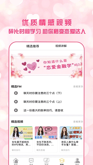 精选教学视频手把手指导,教你如何自然地与心仪对象展开对话,顺利走进她的心里;