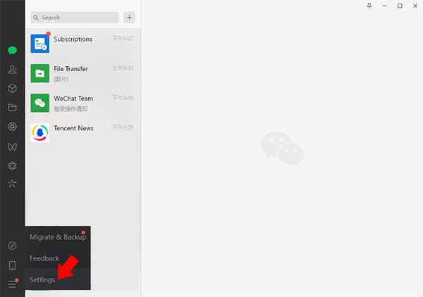 2、UI设计相对简约,左侧栏设有聊天和通讯录这两项,左下角是设置。在功能方面,比网页版略为丰富一些,例如能够备份聊天记录。