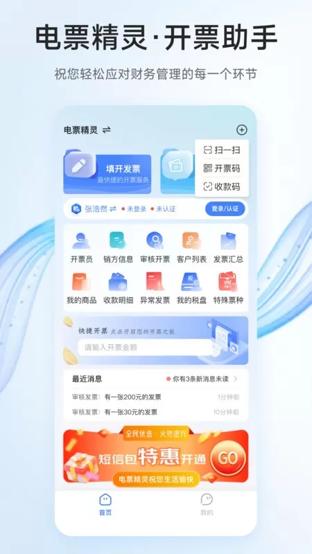 还提供了非常智能的自助扫码开票,这样就可以更快速的进行开票操作了