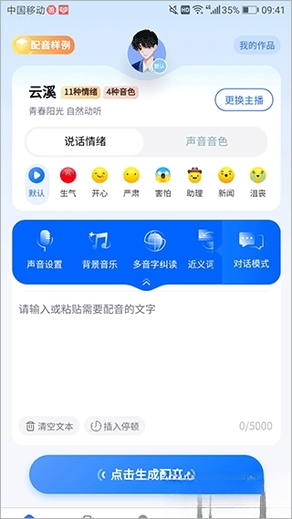 打开并登录账号后,进入配音功能页面,在指定的输入框内填写待配音的文字内容,随后点击“生成配音”按钮完成操作。