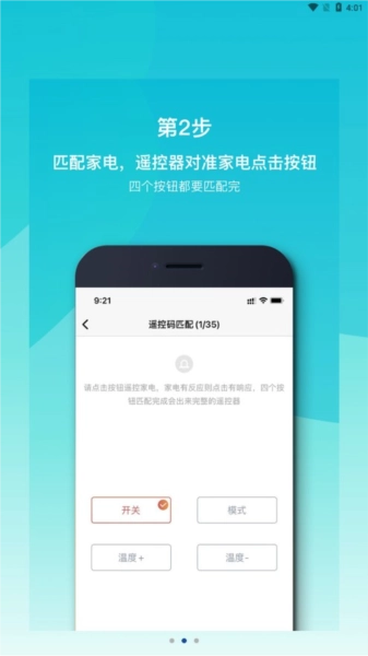 匹配家电,遥控器对准家电点击按钮。