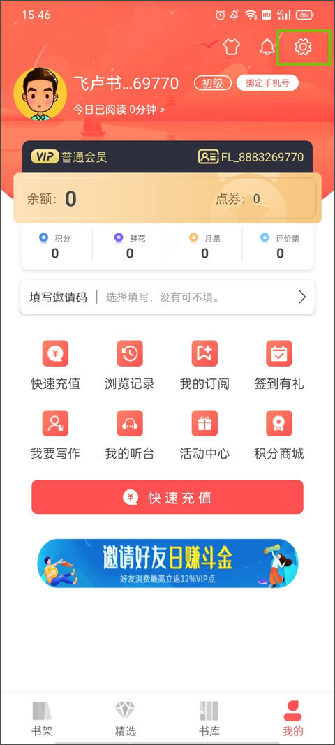飞卢中文网帐号同步使用,一键操作很便捷。