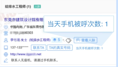 可以了解客户当天被其他材料企业联系的频次,若客户当天被频繁联系,可选择更合适的时间再进行联系,以此降低挂断率。另外,当某供应商的销售人员被同一项目联系人多次快速挂断时,系统会在特定时间内自动阻止该公司与该联系人的联系,进而切实保障其他公司联系该项目时的通话质量。