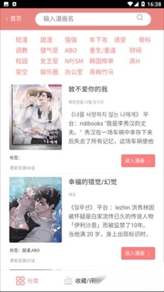 首页还有分类功能,根据内容类型进行了详细的划分。