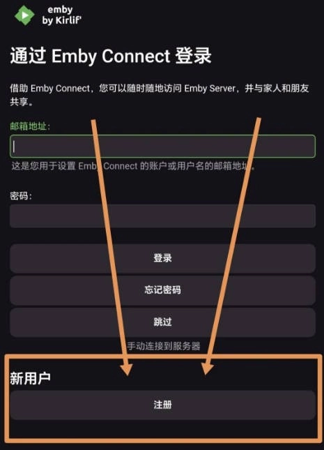 你可以自己注册一个Emby账号,这是你使用该软件的专属账号,直接用邮箱注册就行。