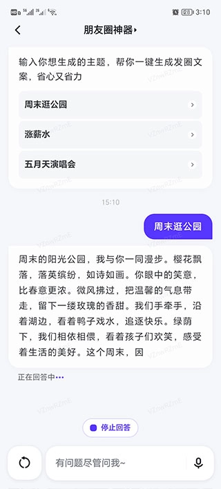 我们可以点进一个朋友圈神器的话题,它能随机生成主题,还能一键生成发圈文案,用起来省心又省力。