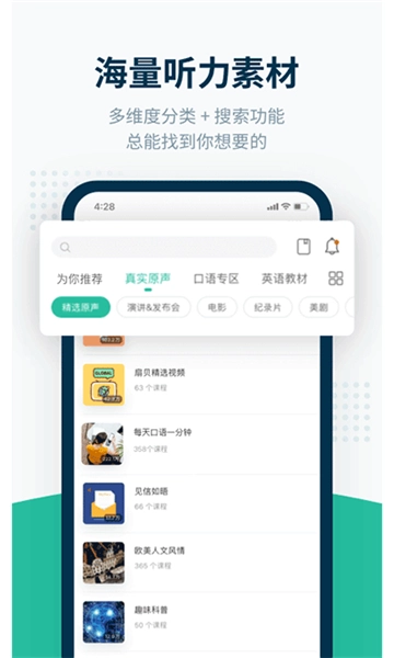 从考试真题、备考资料,到名人演讲、纪录片、电影美剧片段…在这里,你总能找到适合的英语听力资源