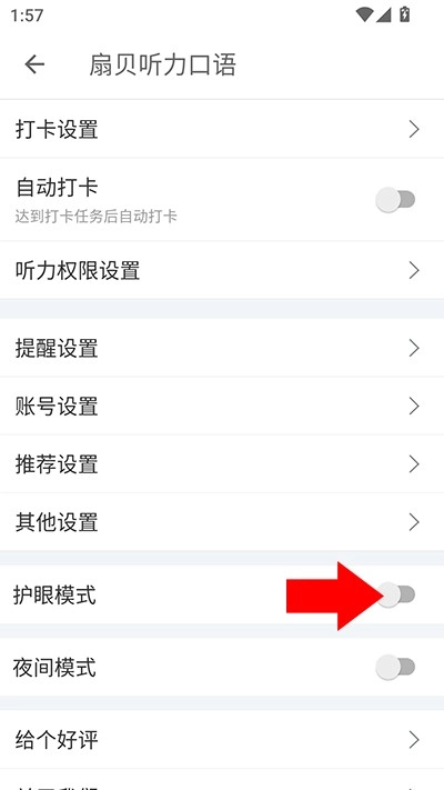 进入设置界面,点击【护眼模式】右侧按钮开启。