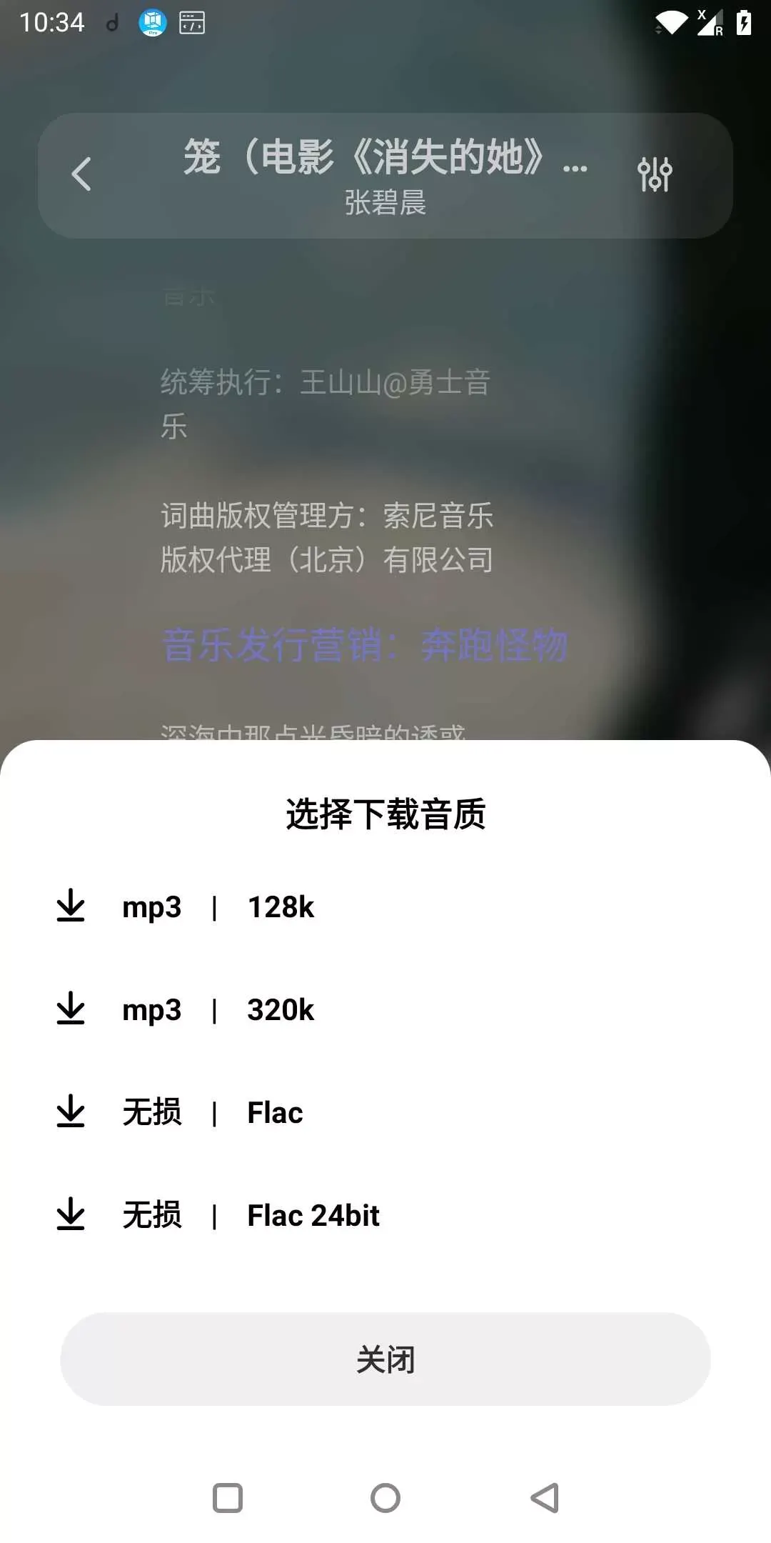 4、一切音乐均有多个解析道路可选,进入你喜欢的歌曲后选择更多,能够歌曲以及观看或MV视频等。