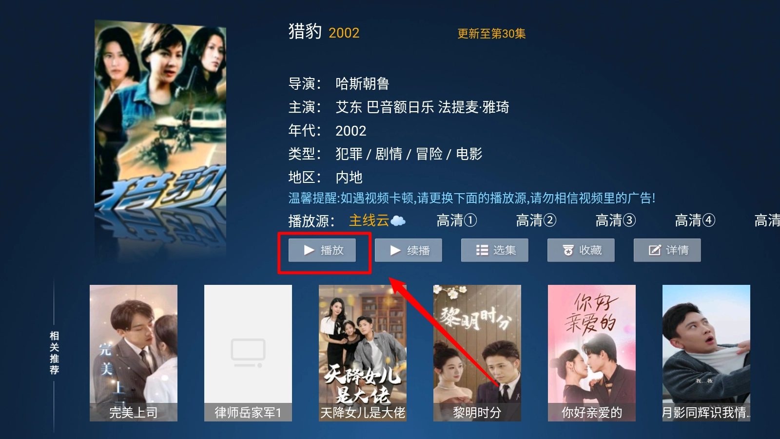在播放详情页点击"播放"按钮。