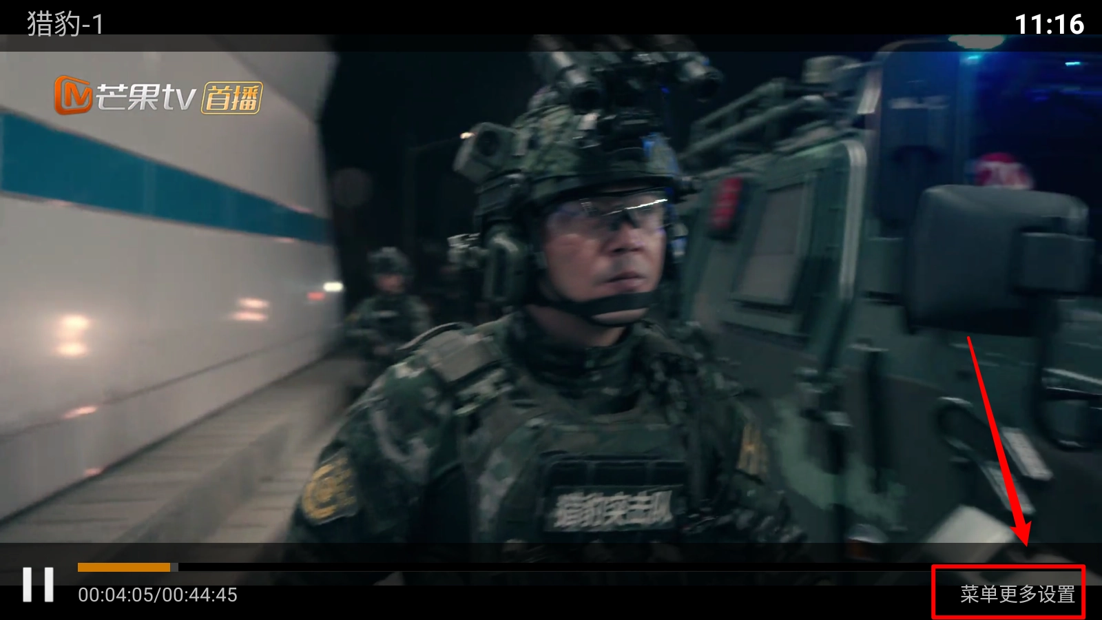 然后在播放页面点击右下角"菜单更多设置"。