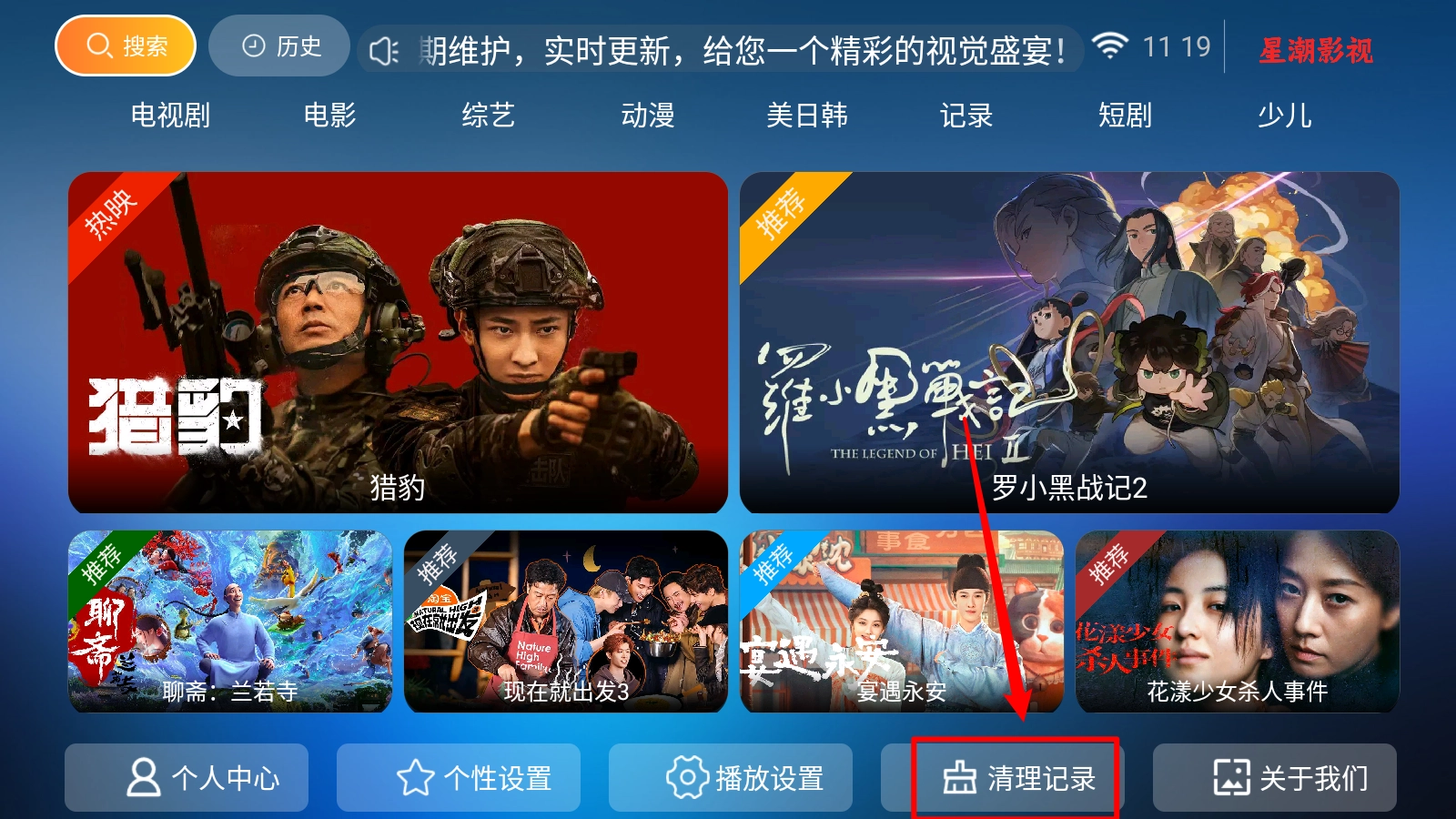 打开软件,在主页点击"清理记录"。