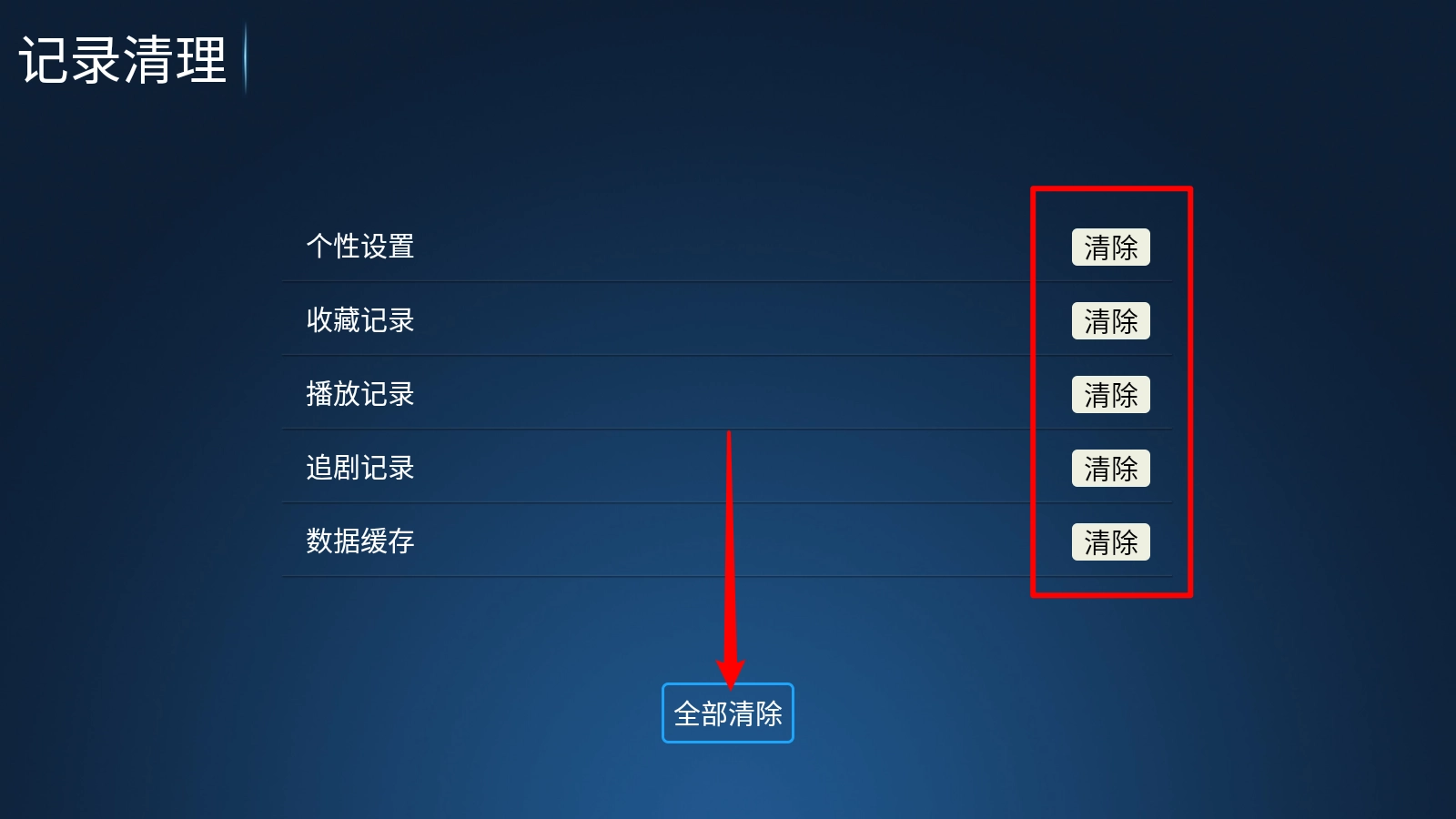 进入后,既可以点击对应的板块单独清除,也能选择一次性全部清理。