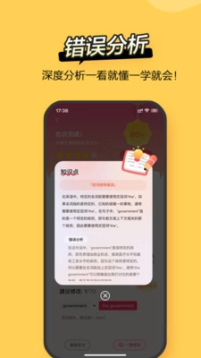 这是一个系统化的英语学习工具,它能够针对学习者出现的每一个错误,给出具体对应的知识点解析以及修改建议。