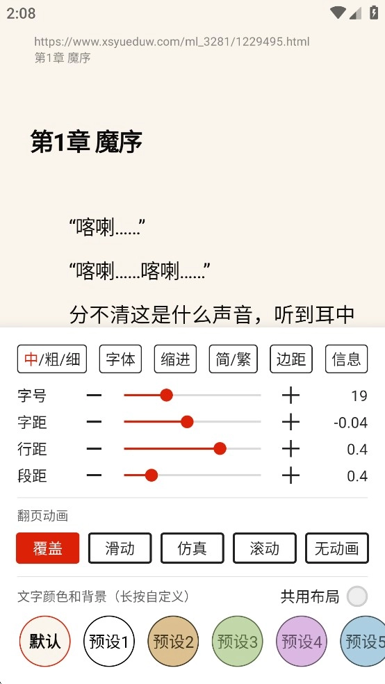 个性化阅读设置功能,支持调整字体大小、背景颜色、行间距,还能开启夜间模式,帮助保护视力。