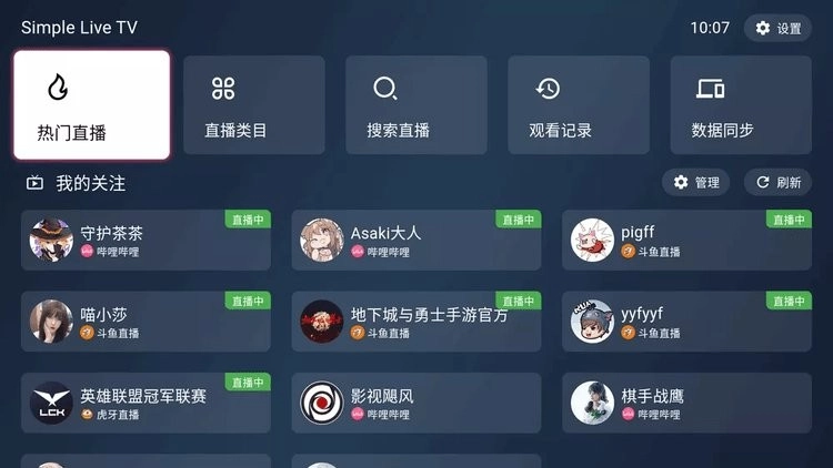 simplelivetv版是一款十分实用的多平台直播聚合软件,其电视端Simple Live TV现已正式上线。这款电视TV应用整合了B站、抖音、斗鱼、虎牙四大平台的直播内容,能够充分满足不同用户的多样化需求。您不仅可以自由切换各平台内容,还能享受流畅便捷的浏览体验,不妨来体验一下吧!