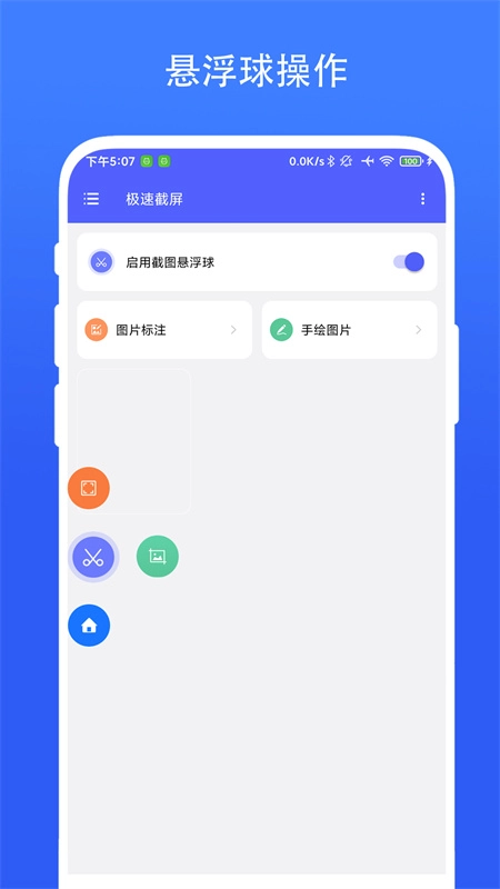 悬浮球触发:屏幕边缘配备可拖拽的悬浮工具栏,整合了常用功能入口,无需进入主界面,轻触即可启动截屏,有效简化操作步骤。
