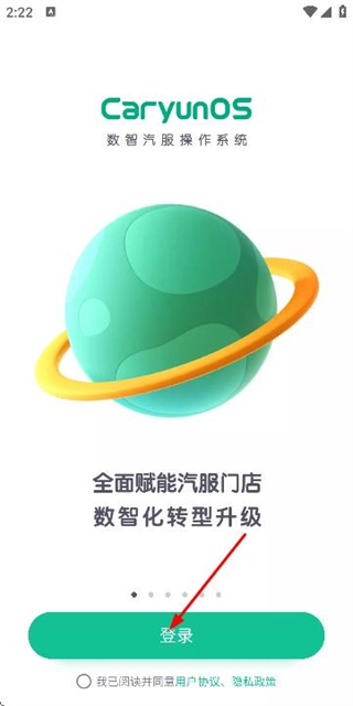 在应用引导页面勾选协议后,点击登录按钮即可进入登录页面。