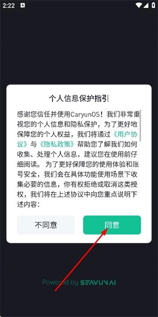 在个人信息保护指引弹窗里点击同意按钮,就能进入应用引导页面。