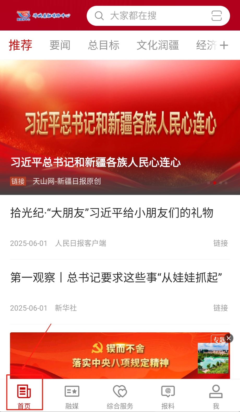 安装应用后注册账号并完成登录,首页会自动显示,同时推荐新闻热点内容。