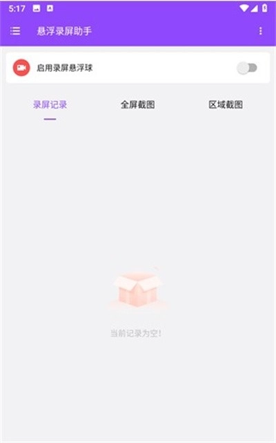 进入软件首页后,这里可能会展示之前录制过的视频,接着点击右上角的录屏悬浮球启用按钮。