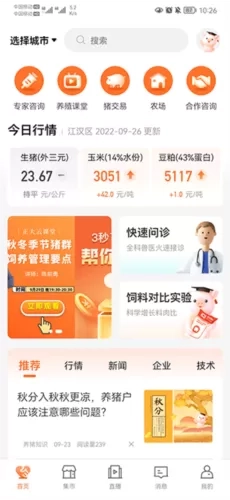 1、打开正大猪博士,在首页中用户可以查询到当日行情,快速问诊、专家咨询等服务