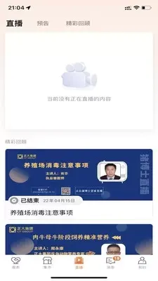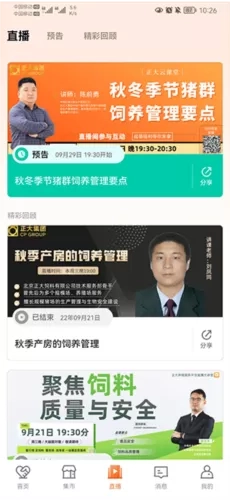 3、在直播界面中,用户还能在这里观看饲养管理要点、以及饲料质量与安全等直播来丰富自己的养殖知识