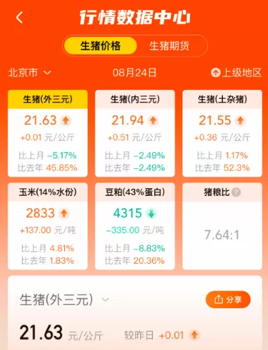 价格动态:能够查看各省份的生猪价格以及价格走势图,助力您精准把握生猪销售的黄金时机。
