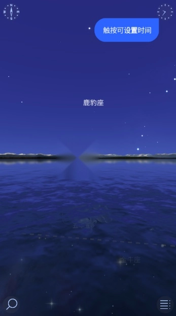 打开星空漫步2应用,进入主界面后,屏幕会展示出当前所在位置对应的星座。接着,按照界面提示在左上角找到指南针方向的标识,最后点击左下角的搜索按钮即可。