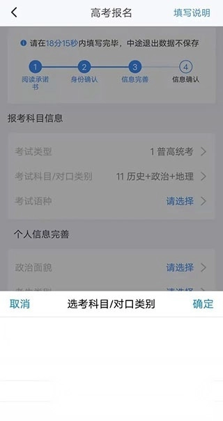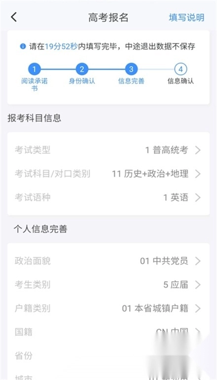 设置好登录账号并填写完个人基本信息后,就能借助该软件办理后续的报考手续了。