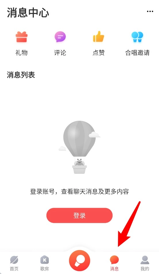 点击“消息”可查看礼物、评论、点赞以及合唱邀请等各类互动提醒。