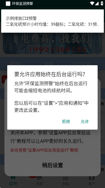 会弹出询问是否允许应用始终在后台运行的提示,你可以根据自身需求选择“拒绝”或者“允许”。